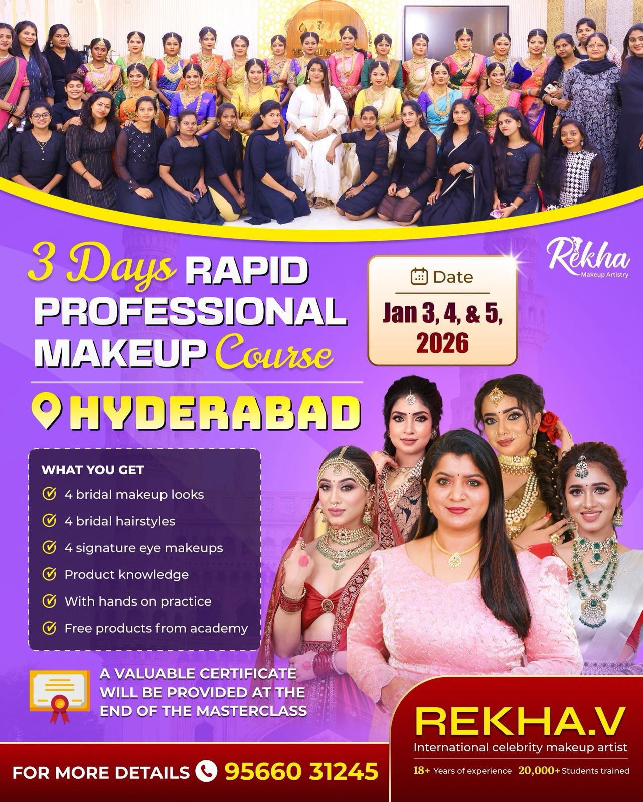 Rekha Makeup Studio and Academy is the best place for aspiring people who love to learn Makeup and Hairstyling with or without any previous knowledge. Just within 16days, You can start your own Makeup Studio or Academy and Start your career in Makeup with flying colours.
